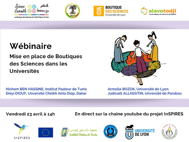 Dans le cadre des activités du projet européen InSPIRES,la Boutique des Sciences de l’Institut Pasteur de Tunis lance un cycle de webinaires intitulé : “Les Boutiques des Sciences à l’Université” destiné aux communautés universitaires et académiques intéressées par la recherche participative et notamment l’approche des Boutiques des Sciences.